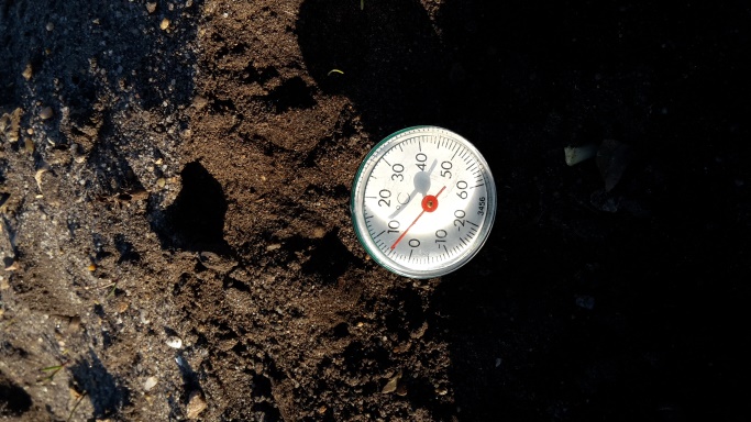 Billede 2 viser jordtemperaturen; 5 °C tirsdag d. 2. maj om morgenen.