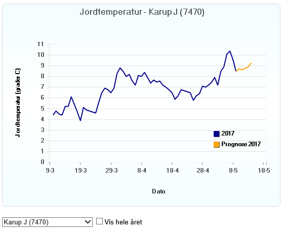 Figur 1: jordtemperaturen i 10 cm dybde d. 9/5-17.
