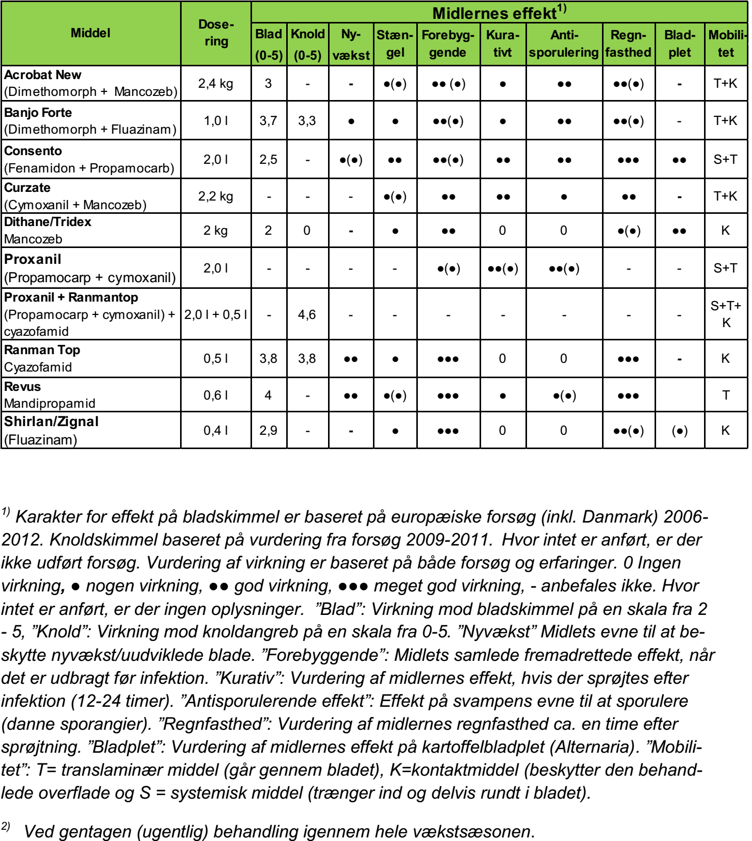 Oversigt over effekten af svampemidler over for skimmel og bladplet i kartofler vurderet i en europæisk arbejdsgruppe Euroblight Workshop 2015.