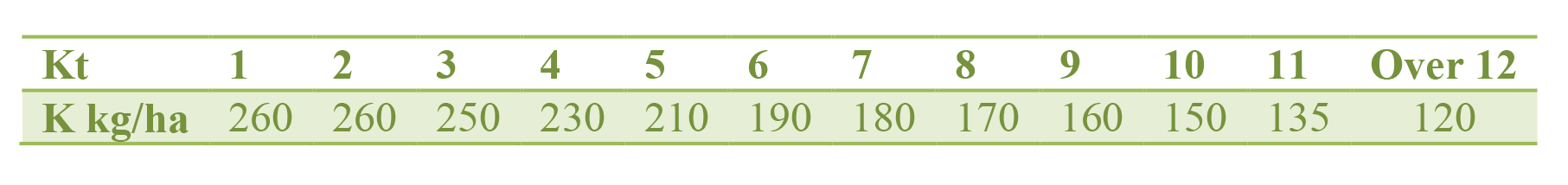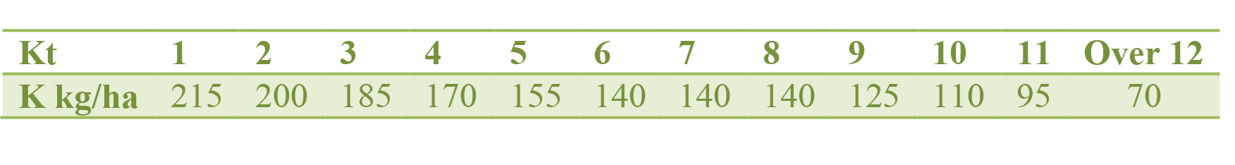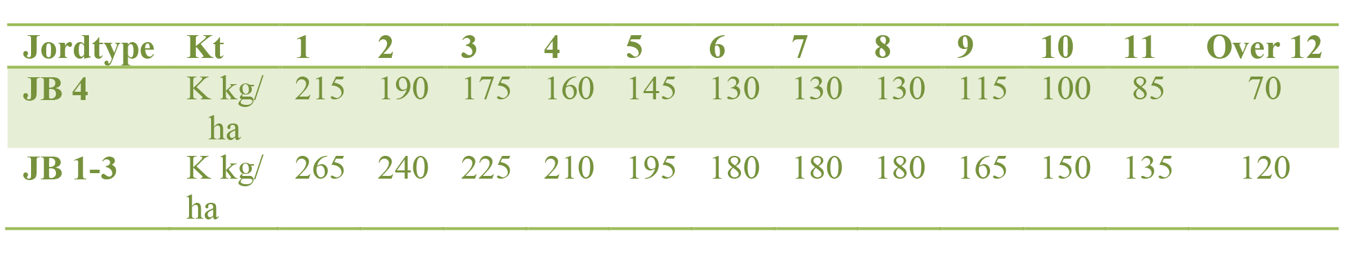 Tabel 4. Anbefalede mængder af kalium til læggekartofler – udbytteniveau 400 hkg/ha