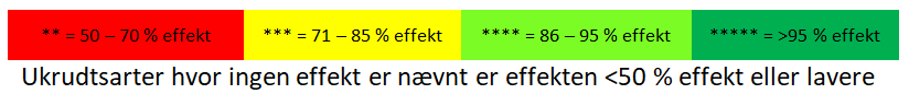 Tabel 1 Effekttabel på midler til brug efter fremspiring af kartoflerne.