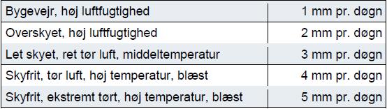 I veludviklede afgrøder kan der være en fordampning, der ligger op til 20 % højere end tabellen.