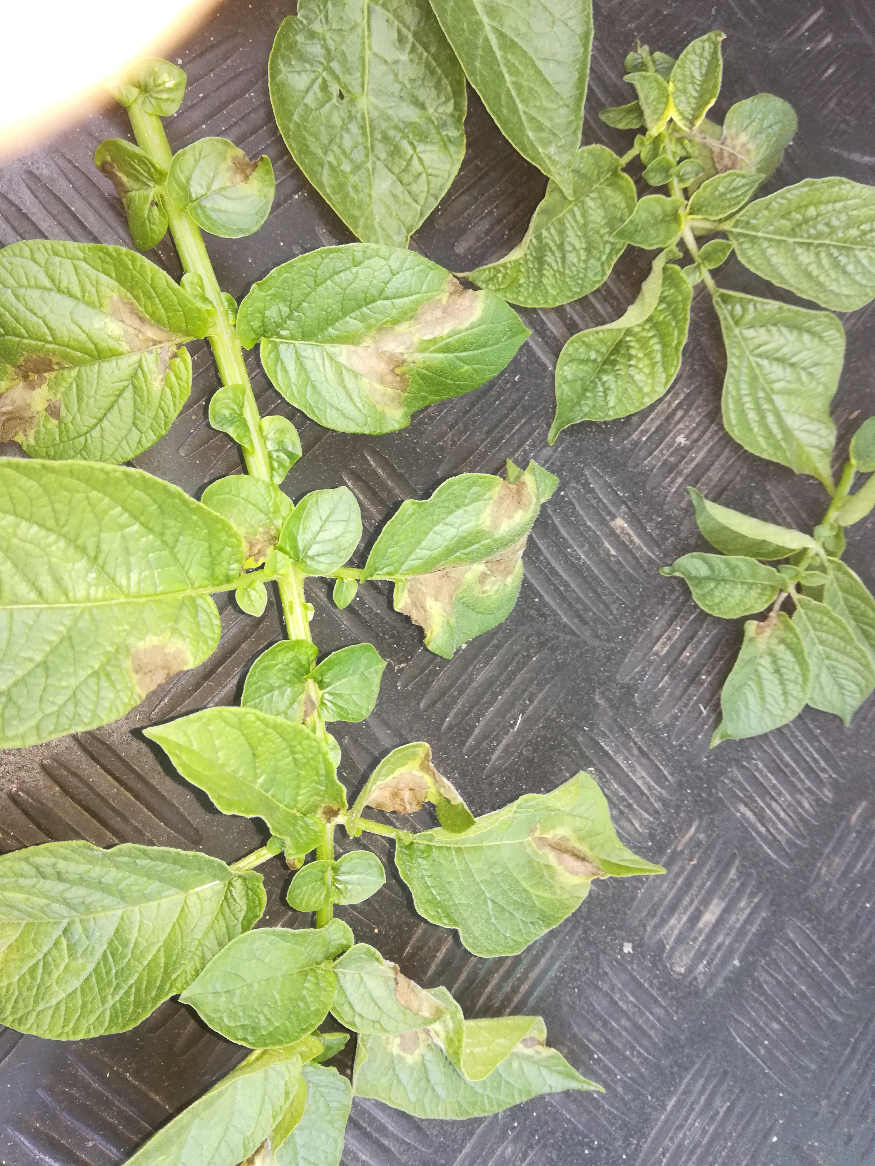 I de kommende dage er der lavt skimmeltryk i følge ”BlightManager”, men med så udbredte angreb som vi ser nu, så skal der slås ned på angreb så snart de ses. Hold et vågent øje – I skal ikke læse sms, mens I sprøjter eller flytter vand – der skal kigges kartofler, når I er i marken (fortæl medhjælperen det).