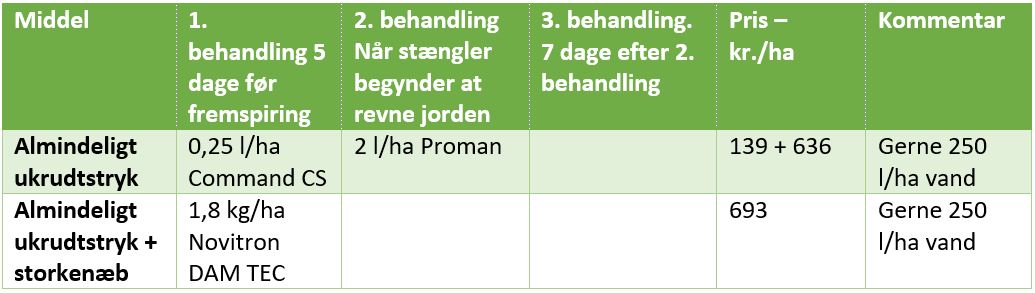 Middelvalget til ukrudtsbekæmpelse i kartofler ændres løbende. De seneste år har der kun været ganske få muligheder for kemisk ukrudtsbekæmpelse efter fremspiring. Derfor er det vigtigt at have fuld fokus på ukrudtsbekæmpelse inden kartoflernes fremspiring.