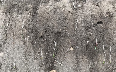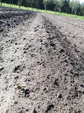Billede 3 Fremspiret ukrudt som let kan dækkes ved mekanisk ukrudtsbekæmpelse (Foto: Jesper Kjelde, SAGRO)