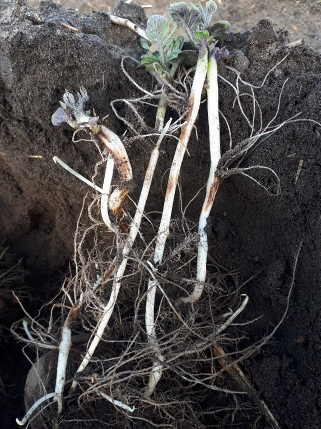 Omslaget til varme har i den grad sat fart i fremspiringen af kartoflerne, som nu mange steder danner rækker. Vi kan mange steder observere en noget uens fremspiring i mange forskellige sorter, som i større eller mindre grad har haft vanskelige betingelser i det kolde og våde forår. Flere steder kan der nu også begyndes at ses angreb af rodfiltsvamp og/eller fritlevende nematoder, hvilket vil være forventeligt pga. kulden og nedbøren, som har forsinket fremspiringen og dermed givet gode vilkår for både nematoder og rodfiltsvamp. De steder, hvor kartoflerne er lagt for dybt, observeres der angreb i større omfang – igen fordi fremspiringen går for langsomt