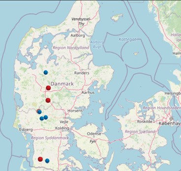 Antallet af registrerede skimmelfund i Danmark mandag den 28/6 kl. 7