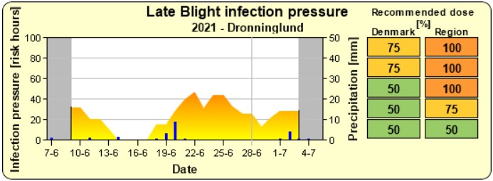 Med ønsket om at reducere antallet af sprøjtninger, er det vigtigt, at der kigges dagligt på, om der er skimmelforhold der lokalt gør, at man skal sprøjte eller ej.