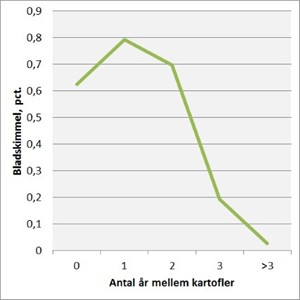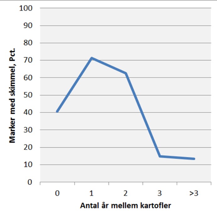 Kartoffelskimmel udvikler sig i retning af større aggressivitet og ved at tilpasse sig sorter som tidligere havde en høj resistent. Angreb af kartoffelskimmel er primært vejrafhængig, men sædskiftet spiller også en rolle, idet smitten kan ligge i jorden som hvilelegemer i 3-4 år og inficerer blade og stængler ved fremspiring og specielt de nederste, som rører kammen. En undersøgelse ved AKV Langholt allerede tilbage i 1999-2001 viste en tydelig sammenhæng mellem sædskifte og angreb af kartoffelskimmel.
