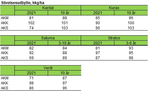 Resultaterne af 2. prøveopgravning fra de tre stivelsesfabrikker ved KMC blev udsendt i sidste uge og viser, at stivelsesudbyttet stadig ligger lavere end det seneste 10-års-gennemsnit. På grund af et koldt forår og sen lægning samt tørke midt på sommeren skønnes det, at stivelseskartoflerne mangler ca. 1 uges tilvækst. Umiddelbart ser der ikke ud til at være stor forskel mellem sorterne. I tabellen neden for ses resultatet for sorterne Kardal, Kuras, Saturna, Stratos og Verdi.