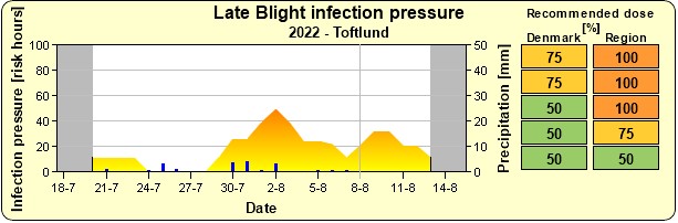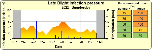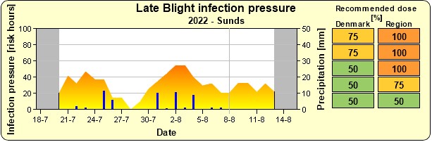 Vejret den forgangene uge har været ustadigt. Skiftende temperaturer, med regnbyger og solskin. Det har derfor været rigtige gunstige forhold for skimmel. Bladplet ses ikke udbredt endnu, men viser sig primært i de pressede sædskifter og tidlige sorter. Der er faldet lidt vand rundt omkring i sidste uge, men der skal stadig holdes gang i vandingsmaskinerne rundt omkring. Pulverfabrikken startede kampagnen i sidste uge med de første Lady Rosetta. Husk kartoffeldagen d. 30. august kl. 8.30 ved Arnborg. Det spændende program kan findes på sidste side.