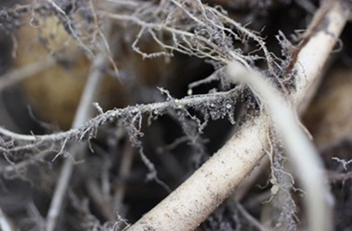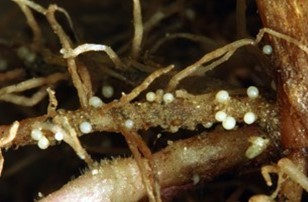 Billede 11 + 12 Små hvide cyster på kartoffelrødder, som kan ses med det blotte øje. Brug gerne en lup.