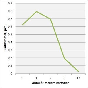 Kartoffelskimmel udvikler sig i retning af større aggressivitet og ved at tilpasse sig sorter som tidligere havde en høj resistent. Angreb af kartoffelskimmel er primært vejrafhængig, men sædskiftet spiller også en rolle, idet smitten kan ligge i jorden som hvilelegemer i 3-4 år og inficerer blade og stængler ved fremspiring og specielt de nederste, som rører kammen. En undersøgelse ved AKV Langholt allerede tilbage i 1999-2001 viste en tydelig sammenhæng mellem sædskifte og angreb af kartoffelskimmel.
