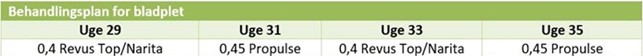 Tabel 1 Anbefalet behandlingsplan for bladplet.