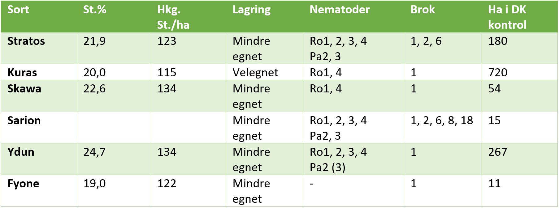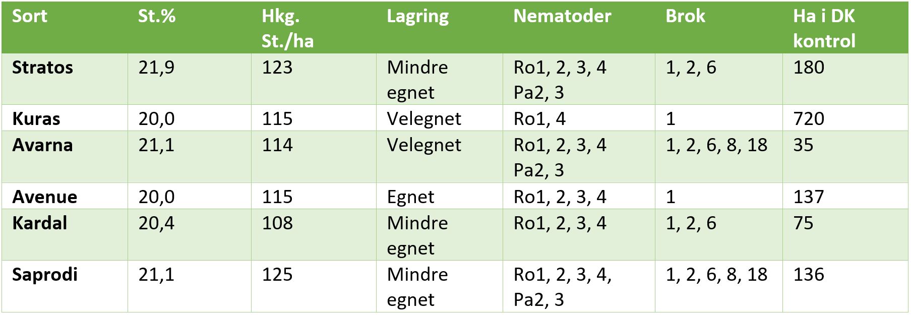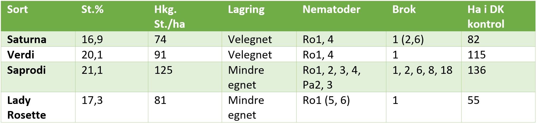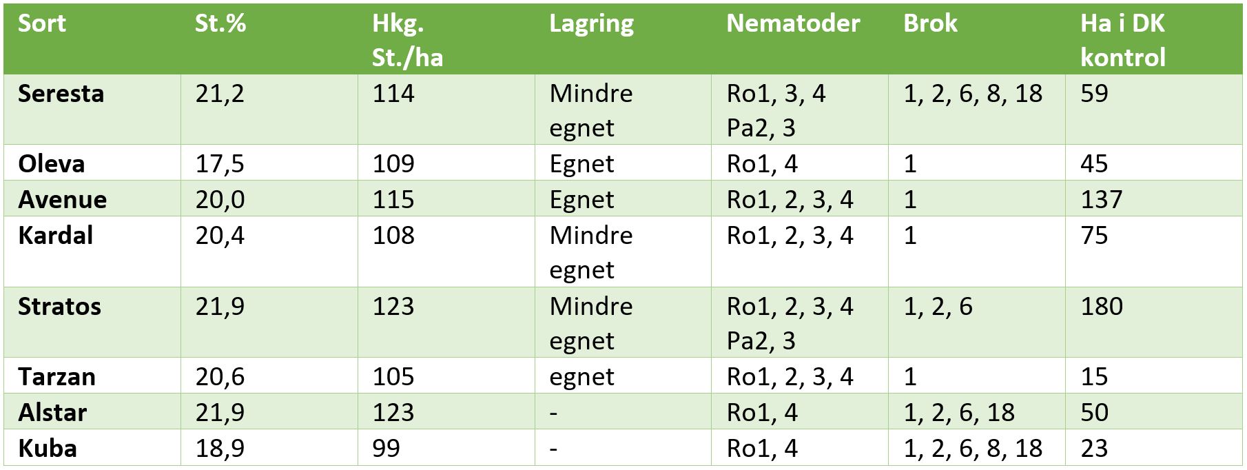 Tabel 1 Tidlige sorter