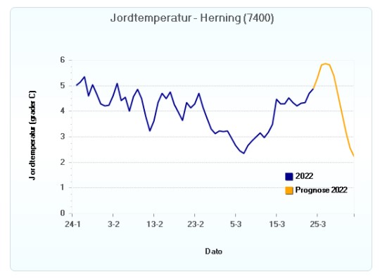 Figur 2 Jordtemperatur ved Herning 25. marts. Kilde: www.landbrugsinfo.dk