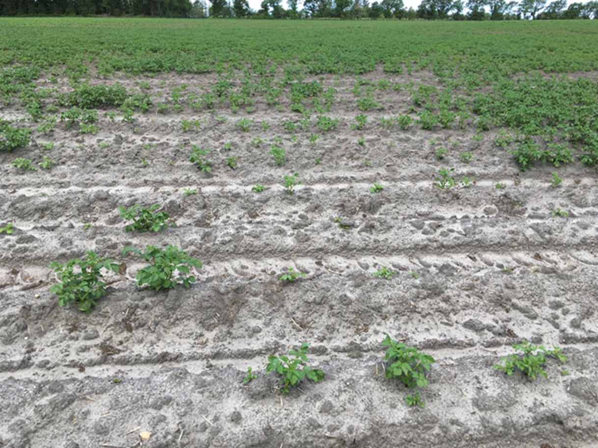 Billede 2 Dårligt fremspirede kartofler som følge af fritlevende nematoder. Foto: SEGES